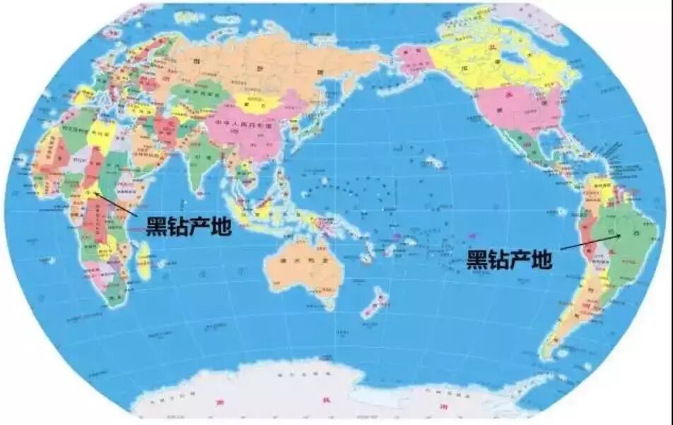 黑色钻石只在巴西和中非共和国等少数国家有产,主要产出在冲击矿和沉积岩当中。