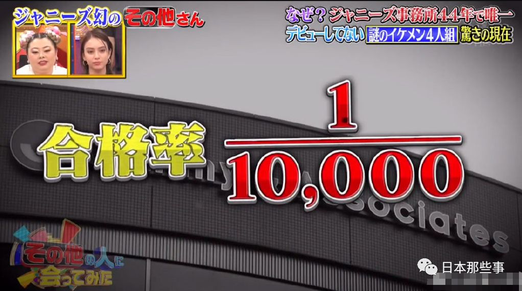 据说按照杰尼斯的招募方式,需要先提交照片与简历进行甄选。而每年共有10万封简历寄往事务所,合格的只有不到10人,合格率万分之一。