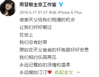 爱猫离去,也不免伤感,不过相信汀汀是带着主人满满的爱离开的。周慧敏发文:相约乐园再见。