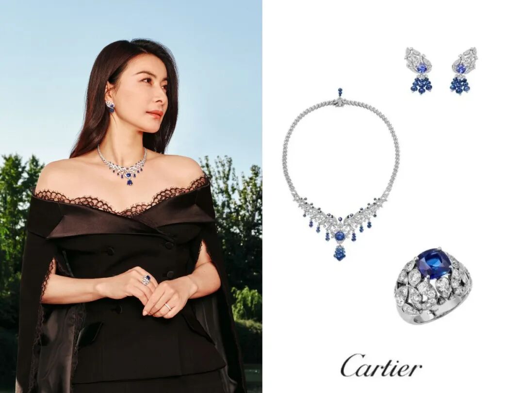 当天她还佩戴了卡地亚高级珠宝系列MIROITEMENT项链及戒指、MANOUR耳环及REPTILIS腕表,也是轻松驾驭。