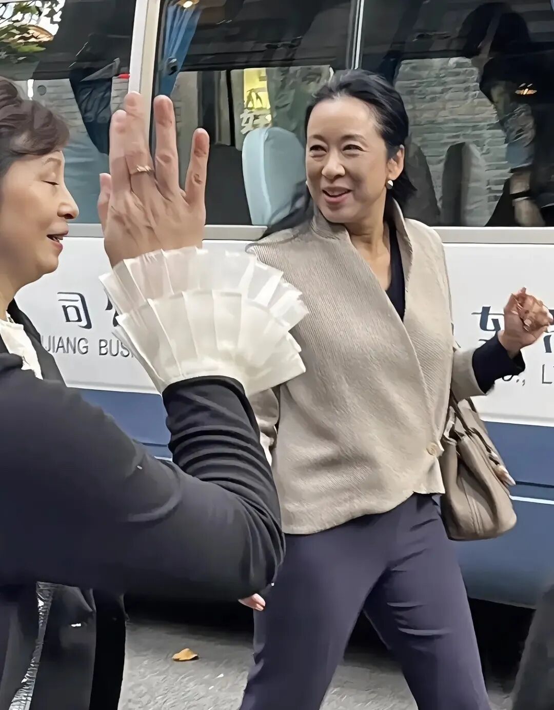郭晶晶也追随婆婆的脚步,私下穿衣不讲究logo。