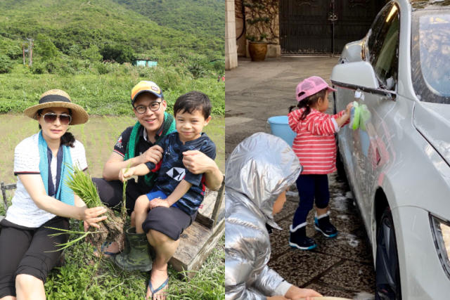 不过更多时候,夫妻俩都是亲力亲为。在“晶刚夫妇”眼中,子女需要言传身教,陪伴是必不可少的,所以一家人常常一起玩耍、活动。