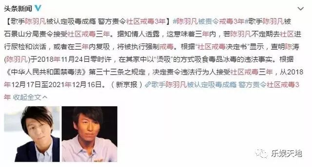 近段时间,娱乐圈“禁毒”的话题出现的着实有些频繁!歌手陈羽凡吸毒被抓,被罚社区禁毒三年!这也宣布着陪伴了听众30年的组合“羽泉”将不复存在!除此之外,“羽泉”已经卖完票的演唱会也不得不取消!这令几家主办单位企业损失也达到了上百万!