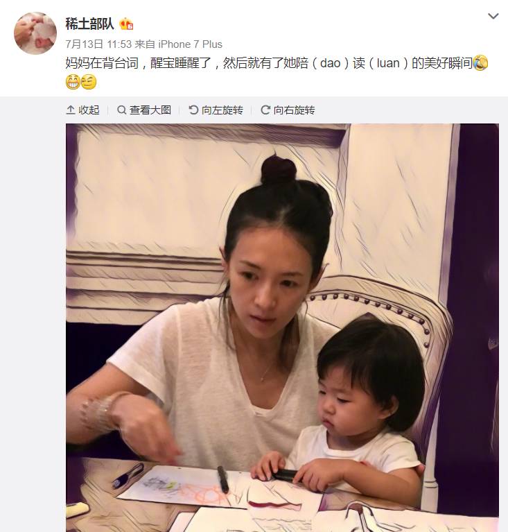 章子怡在荧幕、各种热搜和头条背后,就是“醒醒妈妈”,经常发微博晒女儿,还素颜和醒醒一起“背台词”,母爱爆棚!