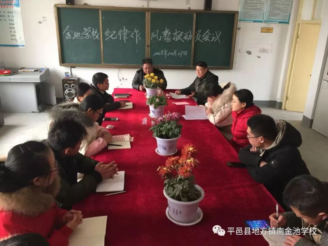 在平邑县地方镇天宝学区党委的统一部署下,12月27日下午,南金池学校纪律作风集中整顿动员大会在学校会议室隆重召开,学校全体教干教师参加会议。