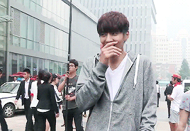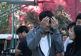 认真到整个人的状态都有点紧绷,导演或其他主创逗他、夸他的时候他才会稍微放松点
