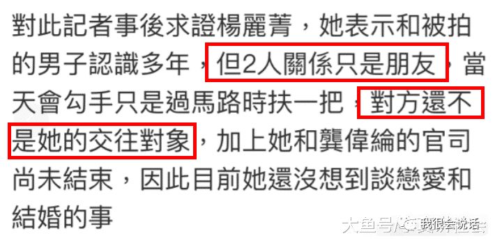 虽然两人当晚的表现十分亲密,但当记者打电话询问杨丽菁是否有新恋情时,她却极力的否认,只说对方是自己认识很多年的好朋友。