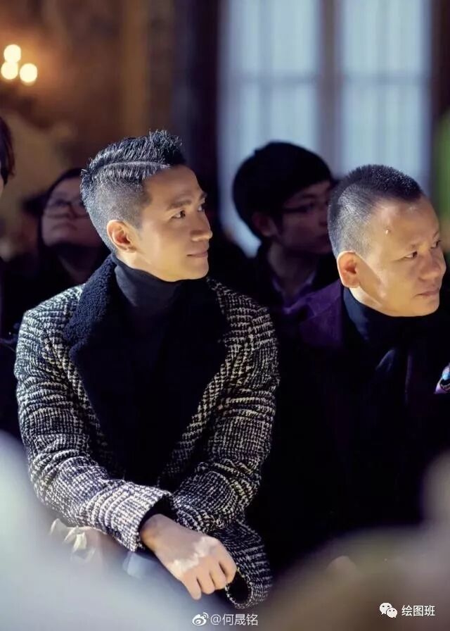 高伟光助阵秀场:AndrewMackenzie,高伟光穿蓝加黑套装先帅气,中分发型相当魔性。