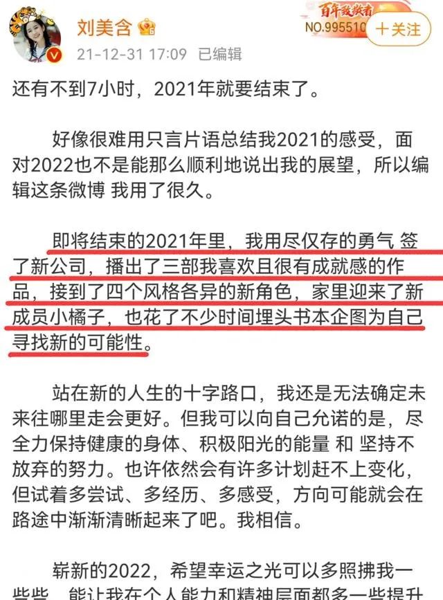 也是在去年,30岁的刘美含官宣加入贾乃亮的经纪公司,她发博表示,这是自己用仅存的勇敢签的公司,因为之前她签约的两家经纪公司都没有给她带来太好的发展,不过贾乃亮公司的资源挺好的。