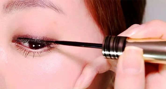 STEP 6:将红豆色眼影涂在双眼皮褶皱处和下眼线上~