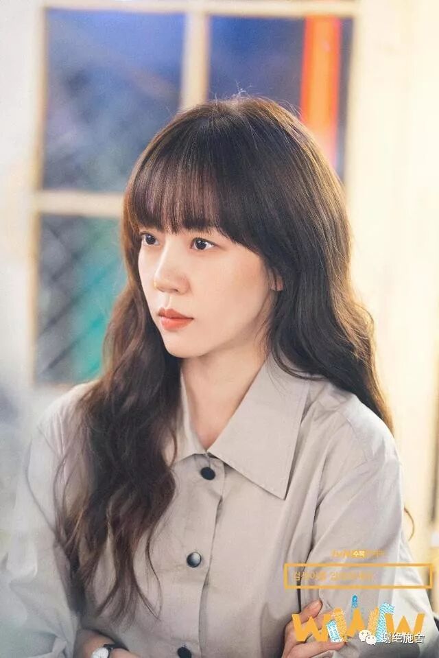 79年的林秀晶和92年的张基龙年龄相差足足13岁, 林秀晶皮肤管理甚好,加上用空气浏海达到减龄感,即使是位居公司高层的女强人角色,也没有显得老成。