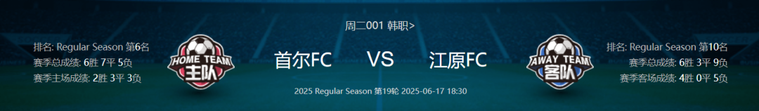 我们来到今日周二001韩职由首尔FC对战江原FC的比赛!首先我们先来看近期战况对比