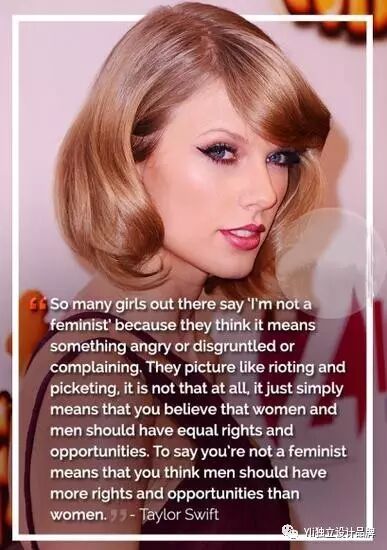 “很多女孩说自己不是‘女权主义者’,因为她们以为那代表着不满或愤怒或满腹抱怨,让她们联想到暴乱,事实完全不是这样。它指的是你相信女人应该和男人享有同等的权力和机会。如果你说自己不是‘女权主义者’,那意味着你认为男人应该比女人拥有更多的权力和机会。”