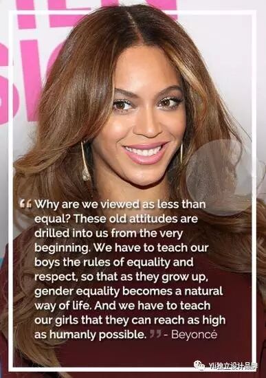 碧昂斯:“为什么我们并不平等?这些老旧的态度自古就在我们的骨子里。我们必须教给男孩子们平等和尊重,这样当他们长大,两性平等就会扎根在他们的生活中。我们也必须教导女孩子们她们可以取得任何人类可以达到的成就。”