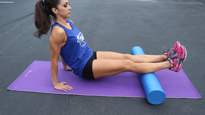 肘撑住地面,用泡沫轴滚动大腿外侧
