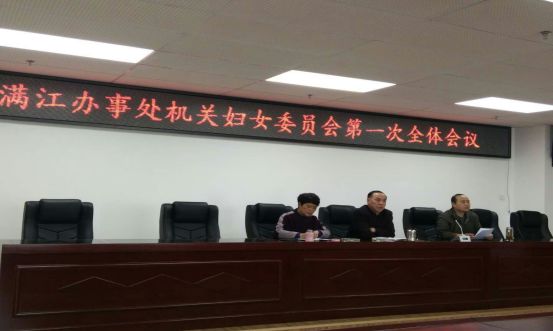 满江办事处机关首届届妇委会表示,在满江办事处党委领导和区妇联指导下,学习贯彻党的十九大精神,以增强政治性、先进性、群众性为导向,做到政治坚定、作风过硬,团结全委妇女干部职工做好妇女工作,为建设全新满江和社会稳定、经济发展贡献力量。