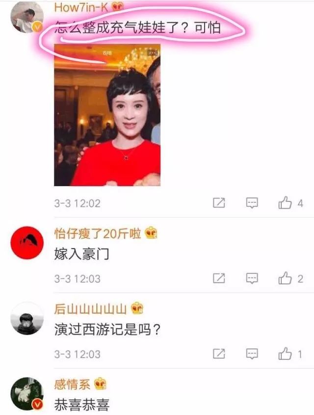 有网友指出,金巧巧的脸变了,好像也动过刀子。有网友直接在评论里提出,怎么整成了的充气娃娃,看着有点可怕了。