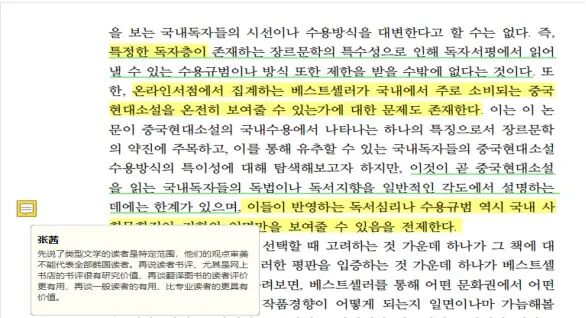 读外语文献时,张茜常常标记许多,加深对文章思路、观点的理解。(如上图)