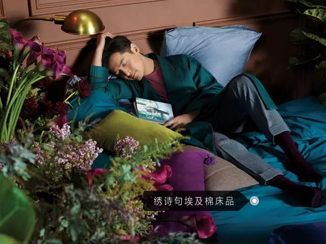 我印象比较深的是,短片里胡歌身下的那条孔雀绿被子,内里绣着一句话,来自王尔德,文艺到动人心弦。