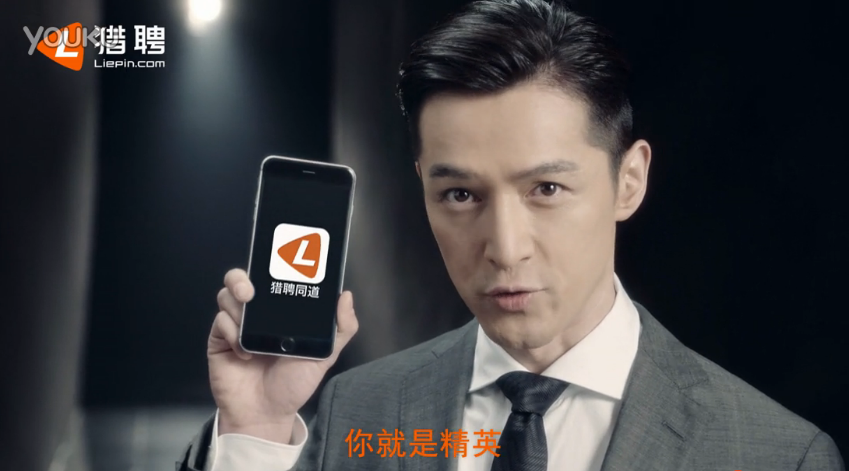 在TVC广告里,胡歌化身为“精英”代表,告诉观众,“上猎聘,你就是精英”。