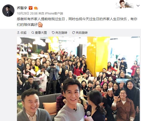 乔振宇在10月29日下午专程现身和“乔家人”一起庆祝了生日。