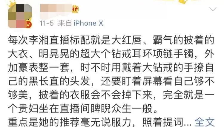 被某大V吐槽身为主持人的她在直播时连产品名都背不下来:全程看提词器,来回重复几句介绍词;