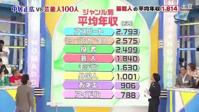 前几年日本有个节目做过调查,得出日本艺人收入从高到低的分布情况分别是运动员,歌手/作词人/评论家,演员,搞笑艺人,模特,外国人,娘娘腔艺人,爱豆。因为调查样本主要还是有一定名气的艺人,所以调查金额在当时来看还要虚高,但是地位是这样没错了。