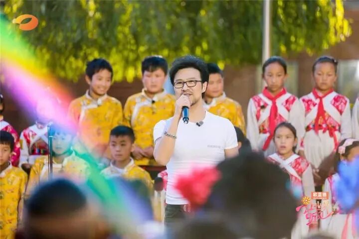 这次,汪峰离开闪亮的舞台,和蔡国庆一起参加了湖南卫视一档音乐公益支教节目《让世界听见》,让更多人开始关注偏远地区儿童的音乐教育。