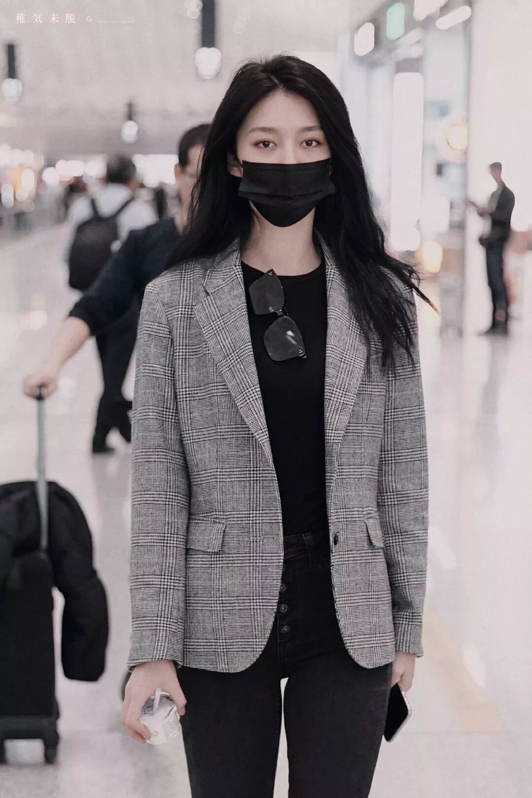 除了衬衫,小西装的出镜率也极高,这件单品对提升她的高级感功不可没。