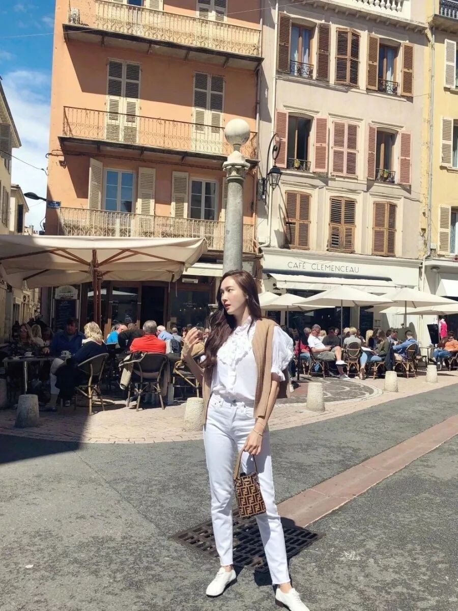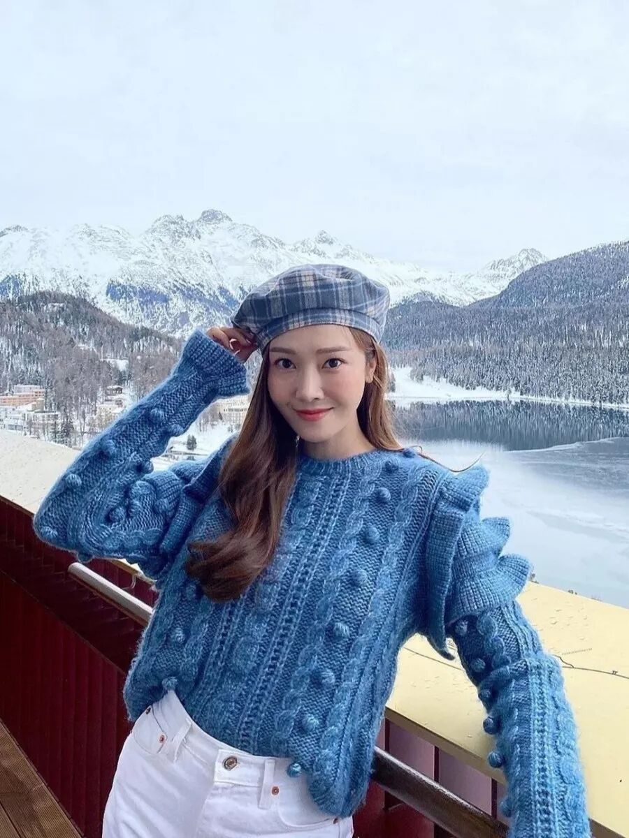 西卡还喜欢把针织衫当做披肩,看起来随意,但是整体精致了不少。