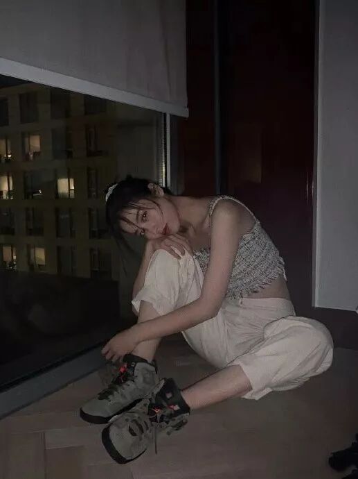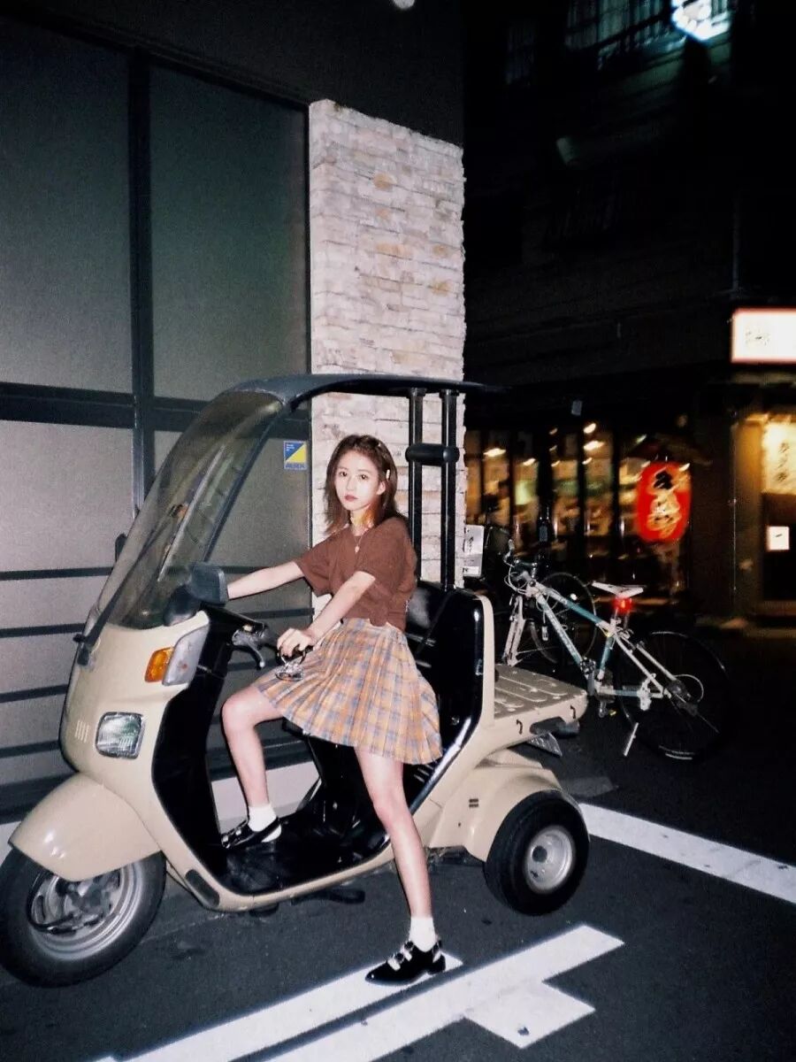 但是怎么才能穿的很酷呢?秘诀就是昏暗的灯光+“我不高兴”的傲娇脸+胶卷风的滤镜