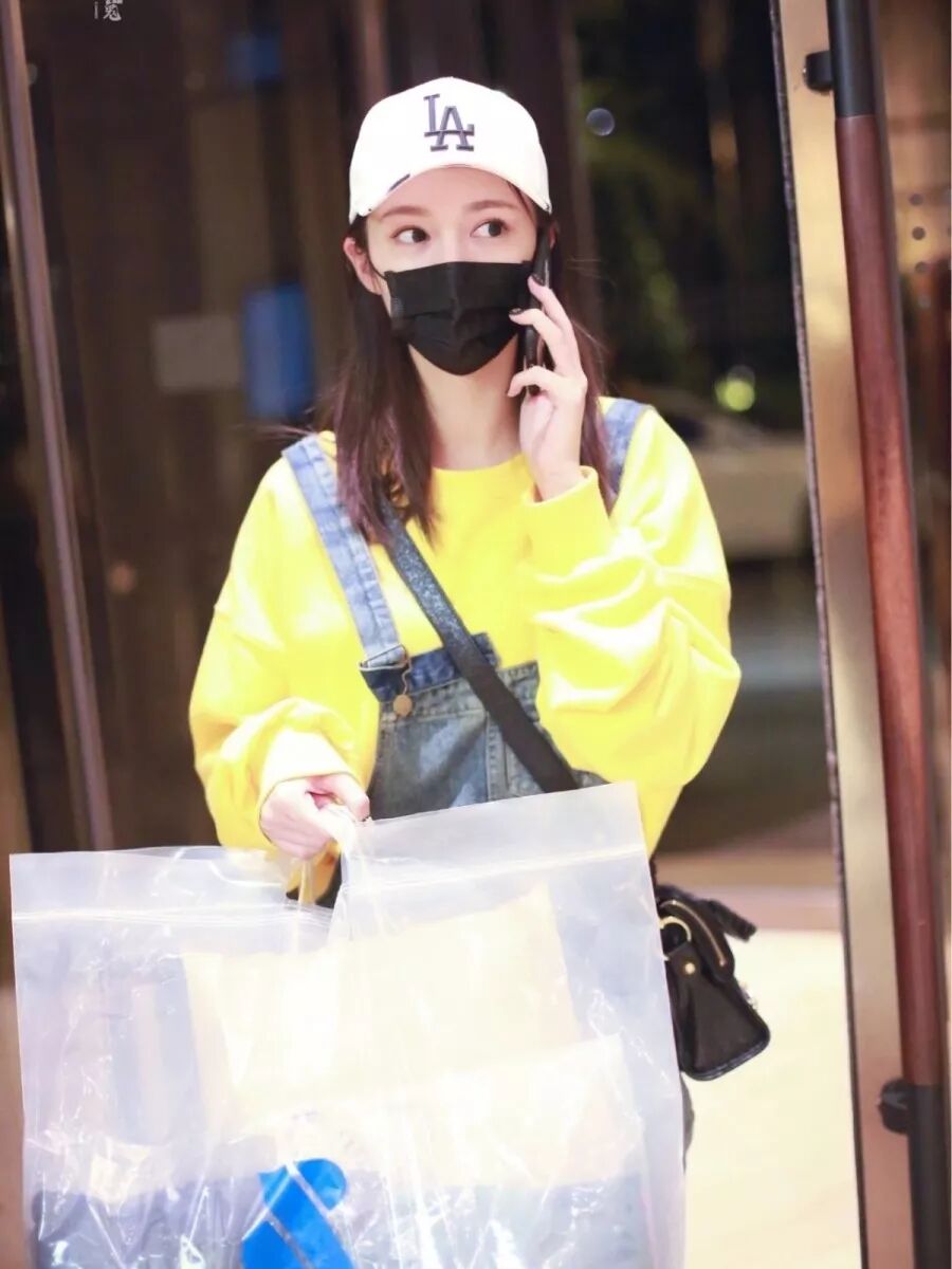 穿奶黄色卫衣加背带裤就是清纯的邻家小妹妹~