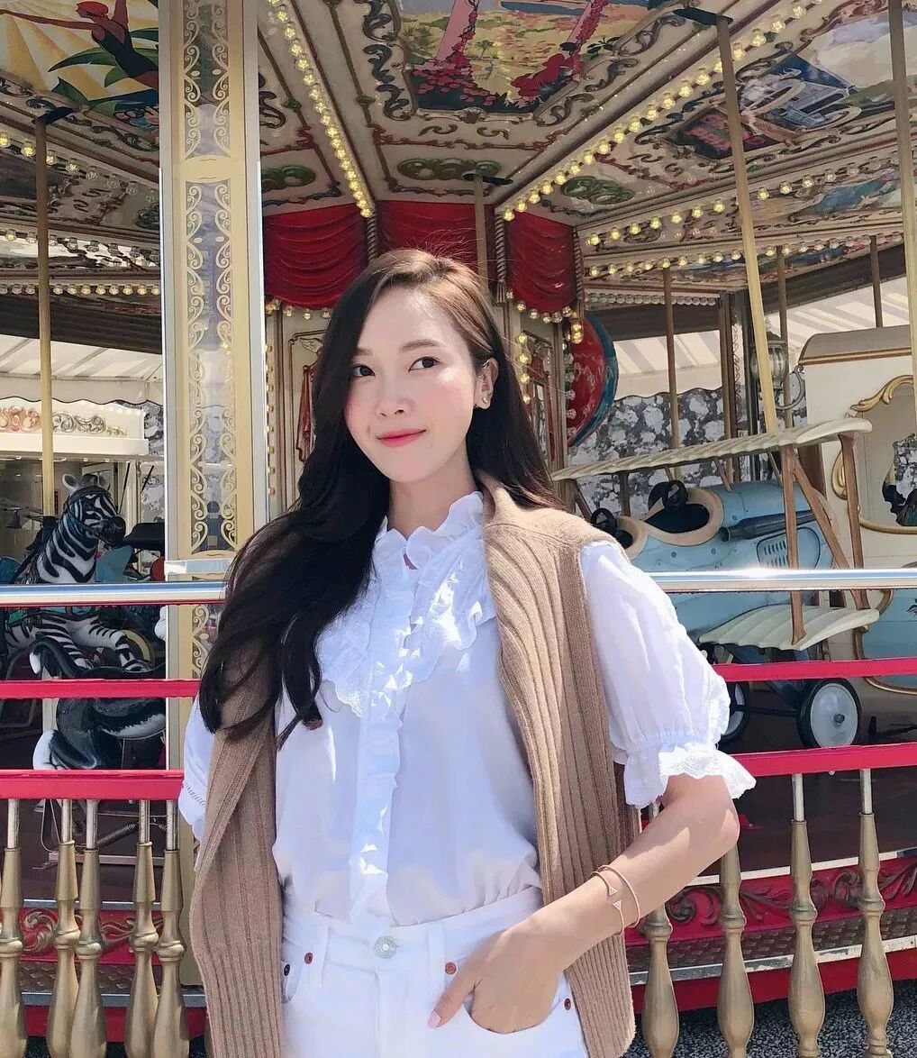私下里,百褶裙和碎花连衣裙这种“少女感”满满的单品她都有,也很爱穿~