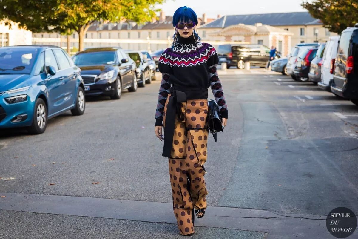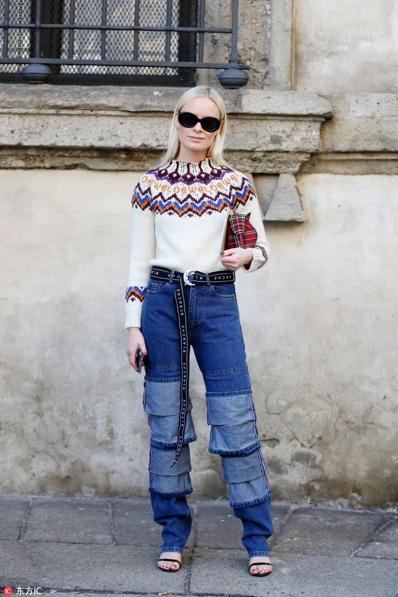用都市摩登感的阔腿裤平衡一下北欧毛衣的绚丽亦能打造些许“反差萌”。