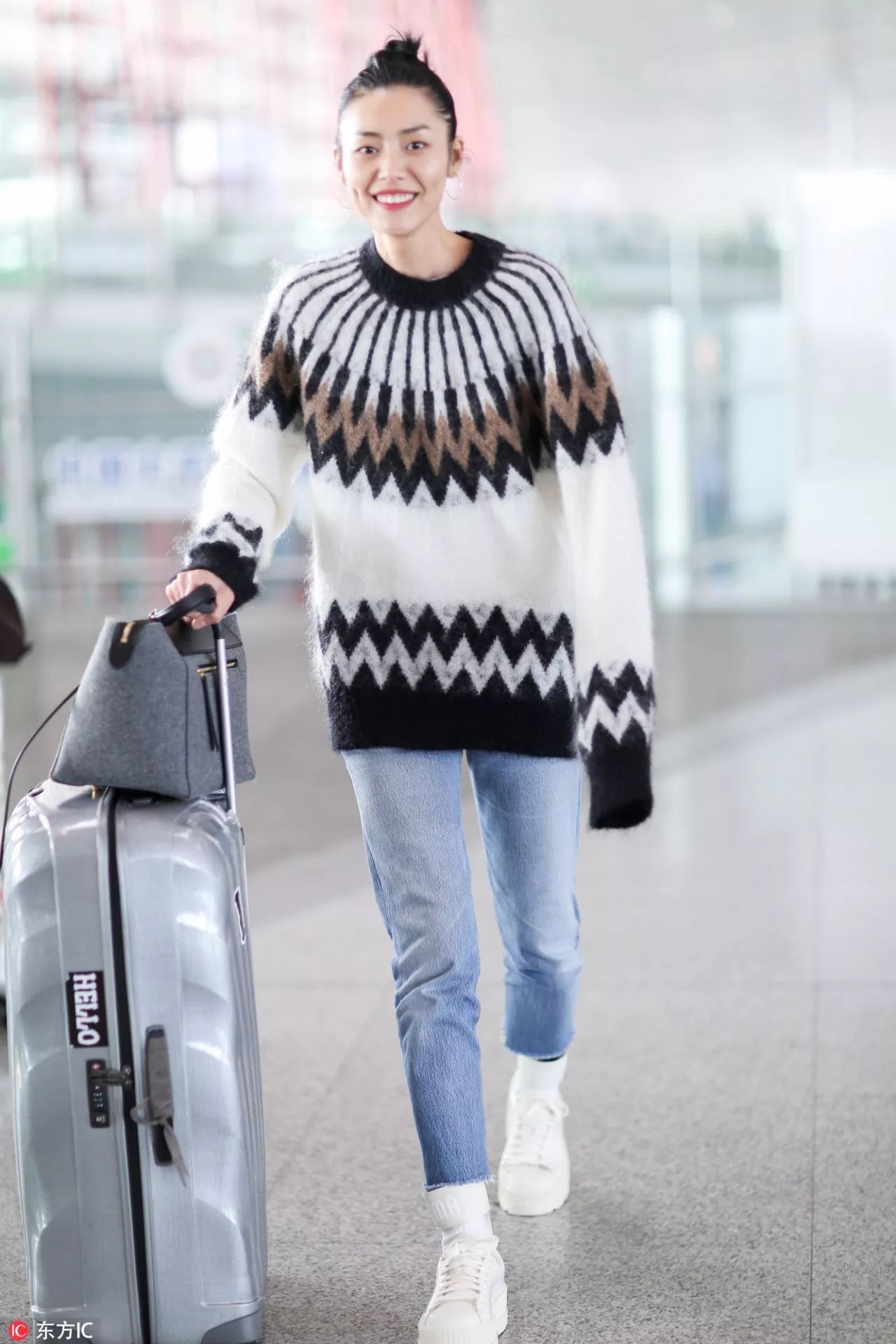 近日刘雯现身机场,我们眼尖地发现她已经率先穿上Erdem x H&M联名系列oversize毛衣,下身依然是刘雯最爱的牛仔裤+小白鞋套路。