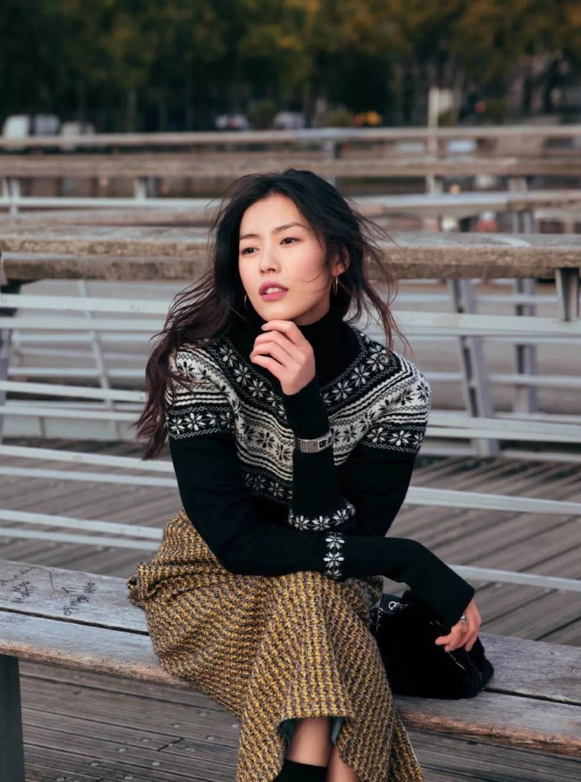 而一向穿衣追求简单时髦的刘雯,唯独在花毛衣面前“失了心”,不过配色的选择上还是坚持黑白色系,简约大气。