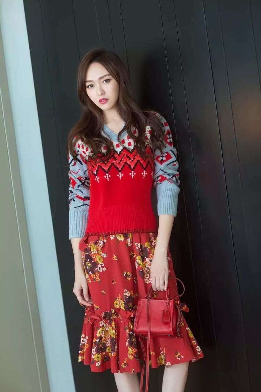 在今年的Coach 2018春夏大秀上,唐嫣身着Coach 2017秋冬系列的北欧风提花毛衣+印花短裙的造型亮相,精致活力的搭配令人眼前一亮。
