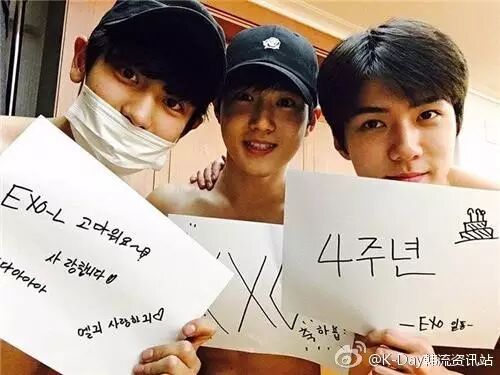 4.[+305 -55]恭喜EXO4周年~这段时间辛苦啦 谢谢你们 很幸福!!以后希望只有好的事情~爱你们EXO EXO♡EXO-L