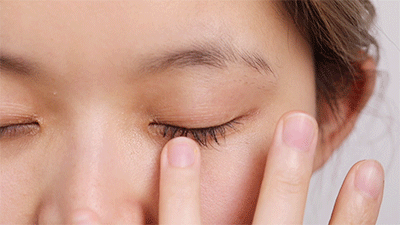 Step 3:待眼膜精华充分吸收后,取下眼膜,将眼霜均匀点涂在眼周。