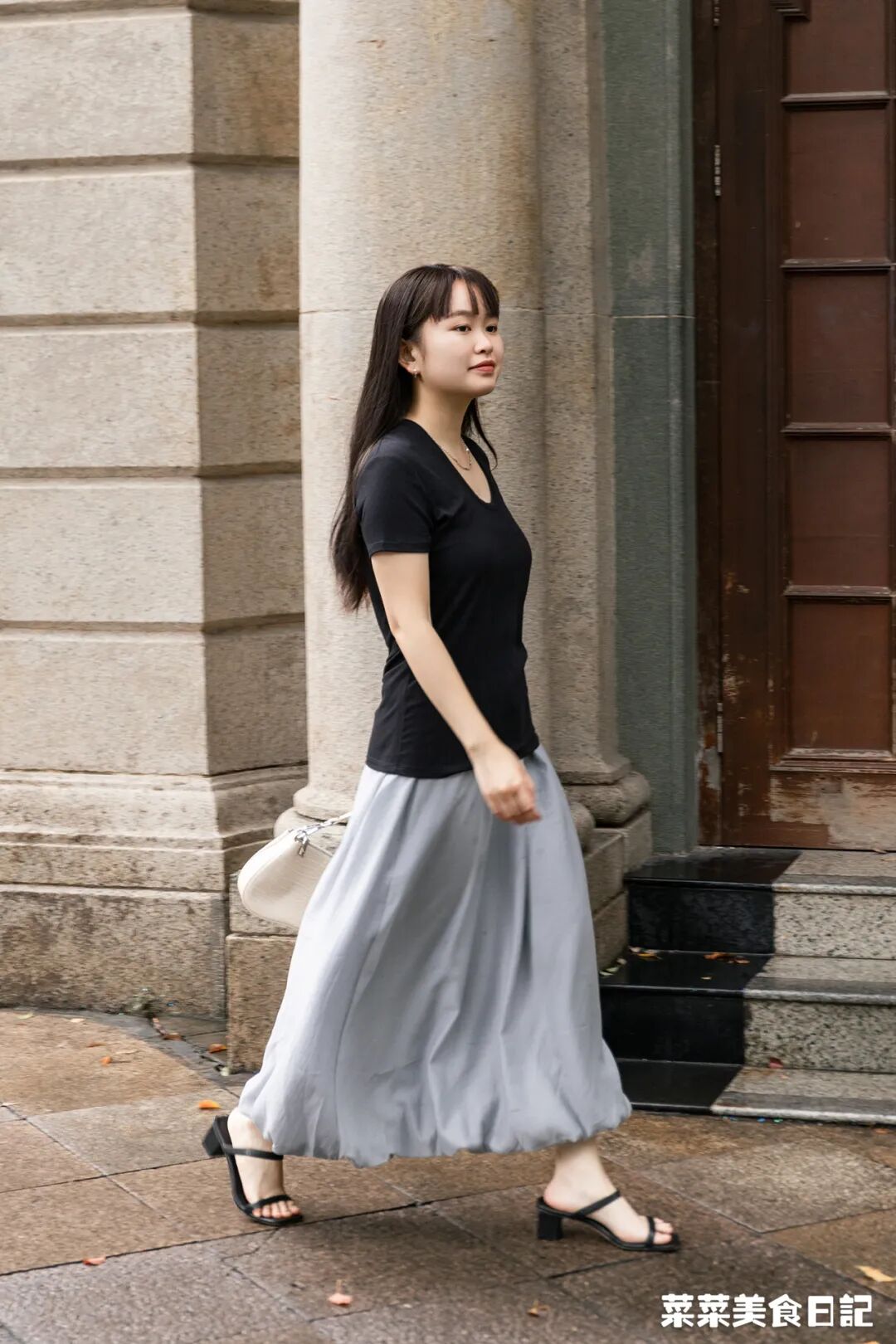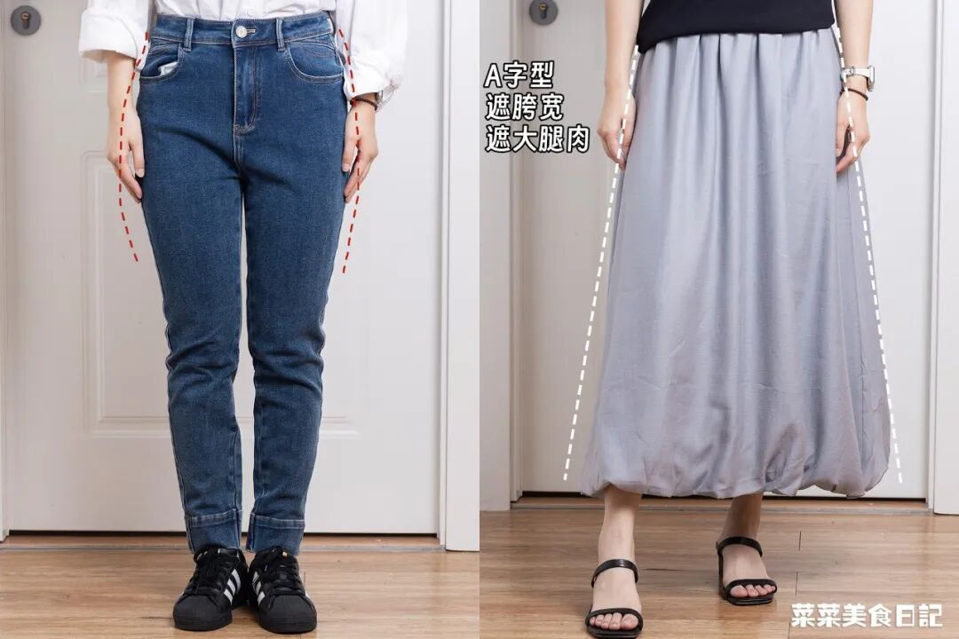 A字廓形也完美遮住大腿肉肉,只露出一点细长的小腿,妥妥的梨型身材福音!
