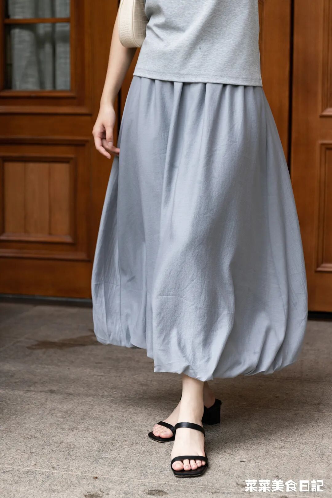 花苞没那么大,裙摆的蓬度刚刚好,不会显胯宽,是大部分人都能很好驾驭的基础弧度。