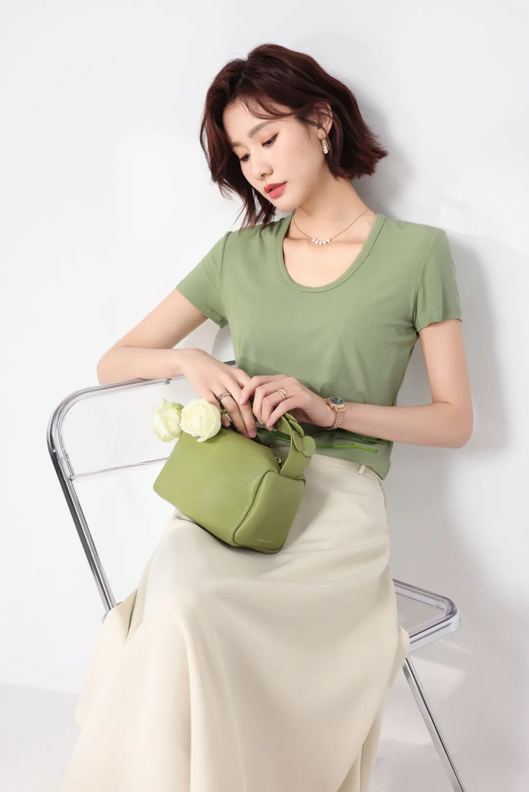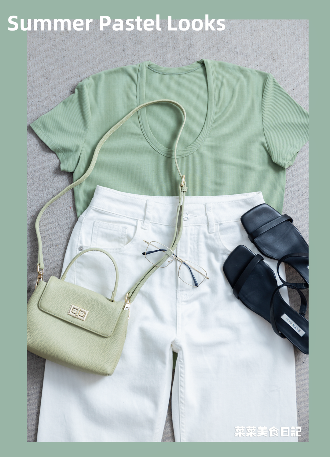 下半身穿个白裤子或白裙子,青柠绿+白色=夏日气泡水,清爽到冒泡!
