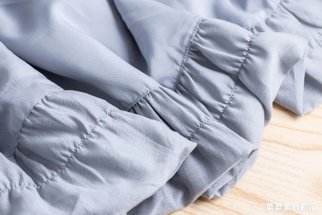 很多花苞裙为了追去蓬松轮廓,会选用相对硬挺的面料,比如欧根纱、塔夫绸等,这样塑形效果确实好,但会牺牲部分舒适度。