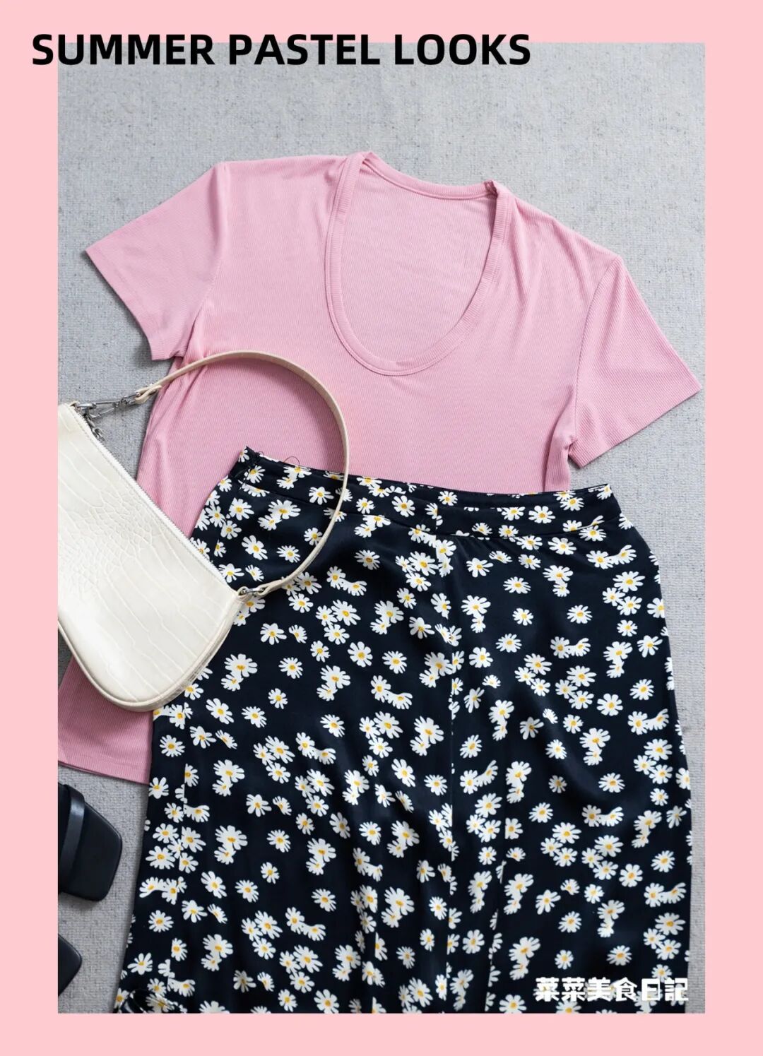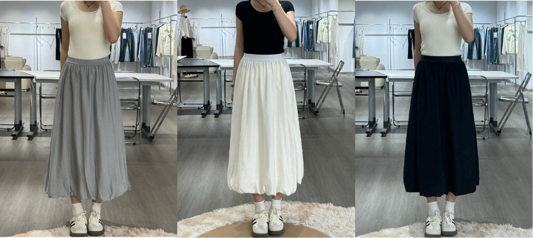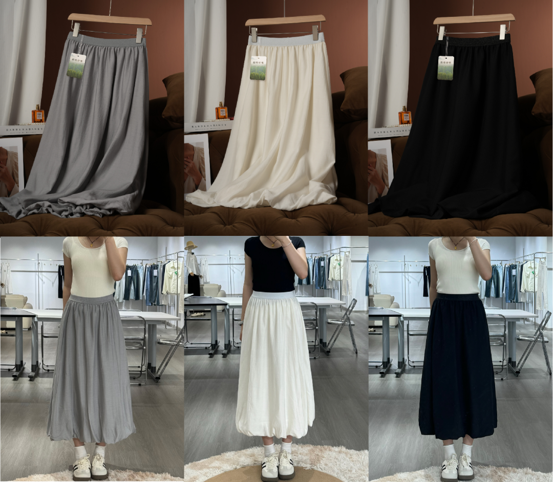 所以除了T恤,我还给大家准备了一条醋酸花苞裙作为搭配,两个都贼百搭。
