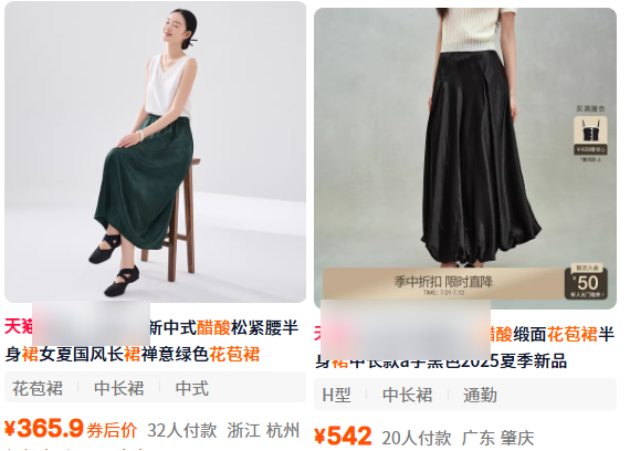 这条醋酸添加虽然只有一半,但剪裁各方面会很费人工,加上花苞裙的热度,定价200都是很有市场的。