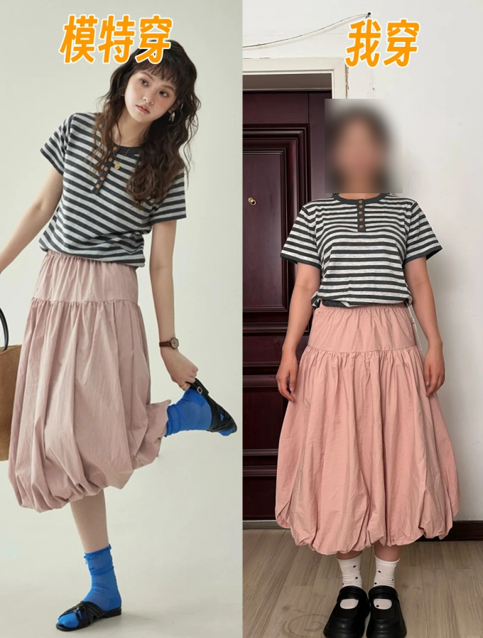 但裙摆这个蓬松度得把握好分寸,不然上身很容易显胖。