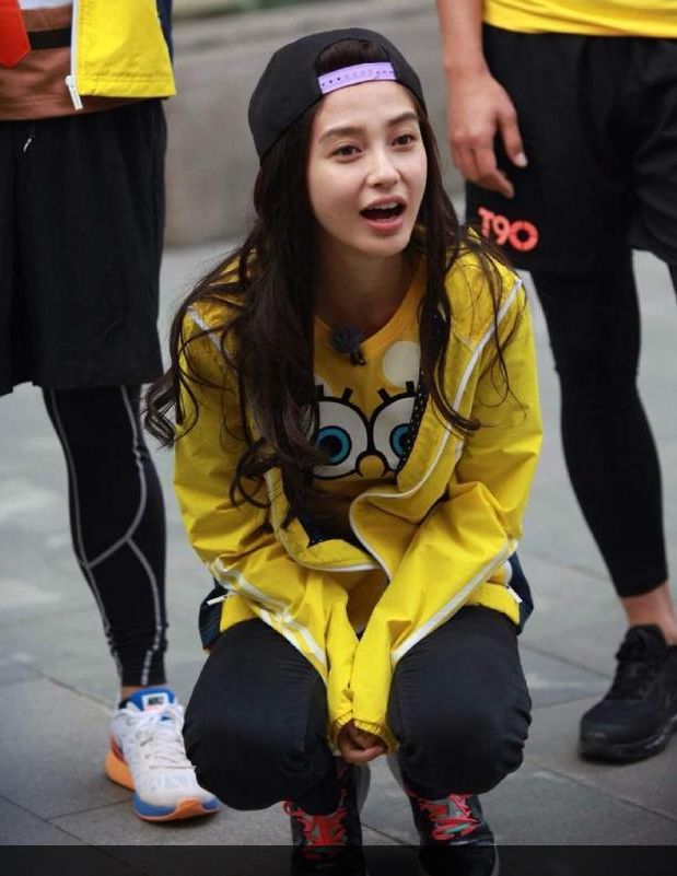 而在后面的录制中Angelababy换掉了上衣穿上了便于行动的卫衣,下半身还是那条黑色裤子,当她脱掉鞋后,立马产生差异难怪邓超和selina会这样吐槽,对比太明显了。