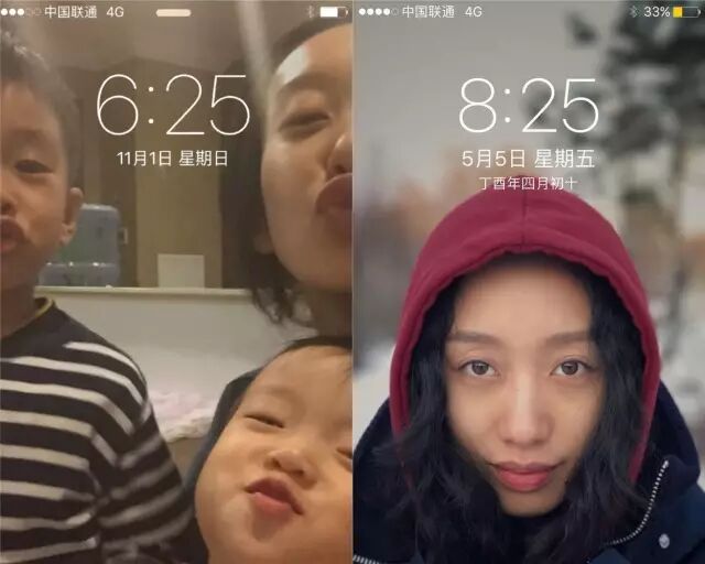 之前在网上看到他的手机屏保是麦子和两个小朋友(左↓),我问他现在还是吗,他给我发了右边这张屏幕的截图▼