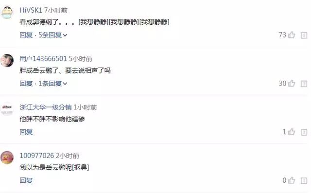 照片一出也是被网友纷纷吐槽啊:有的说像岳云鹏、有的说像郭德纲.....斌斌还是快点减肥吧。
