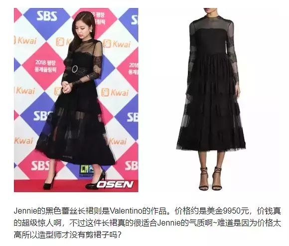 看起来差不多,可是JENNIE穿的是价值近10000美金的礼服,对,一万。